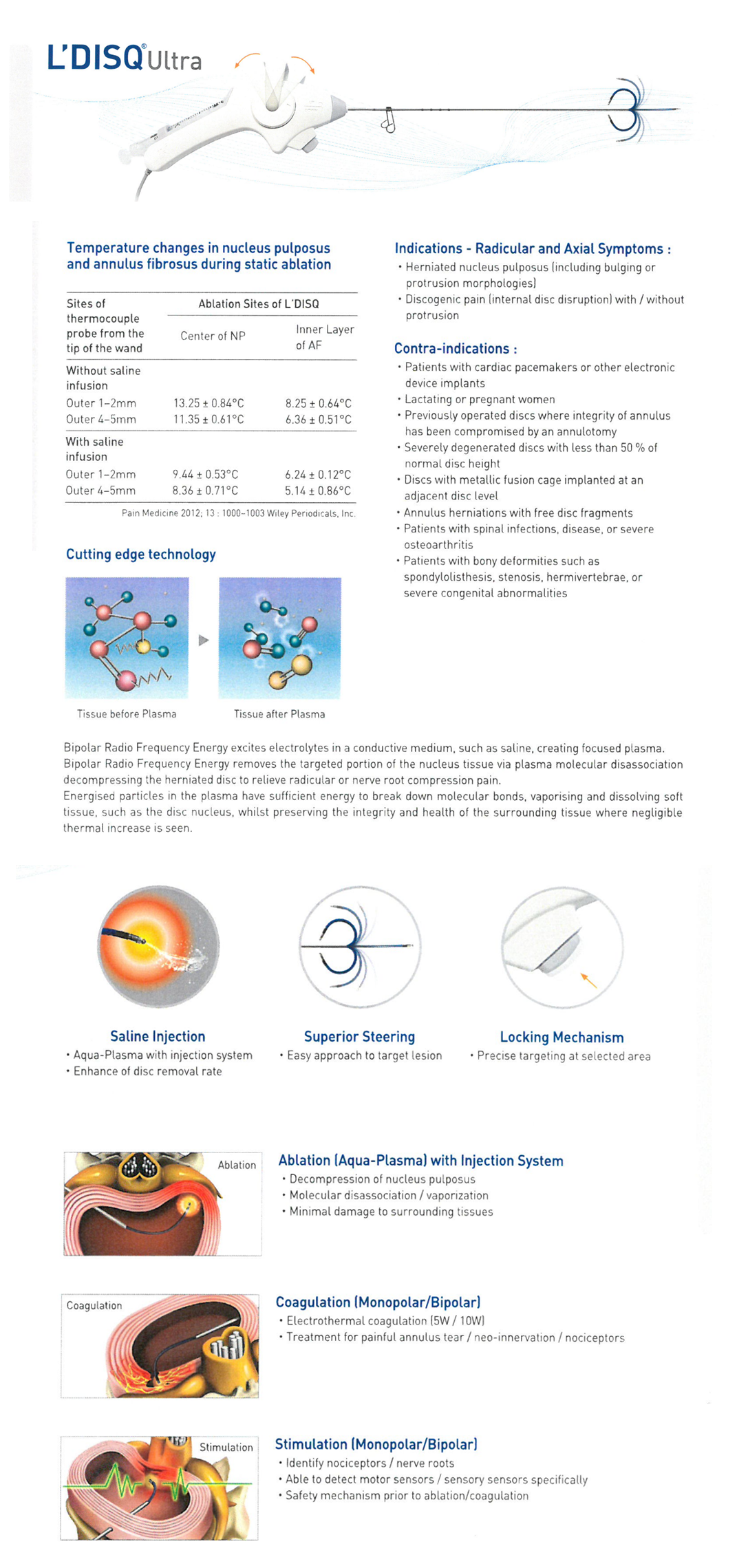 새로운 최소침습적 시술장치로 플라즈마를 이용하여 주변 조직의 손상 없이 선택적으로 탈출한 추간판을 제거 가능하여 안전하게 시술을 할 수 있습니다.