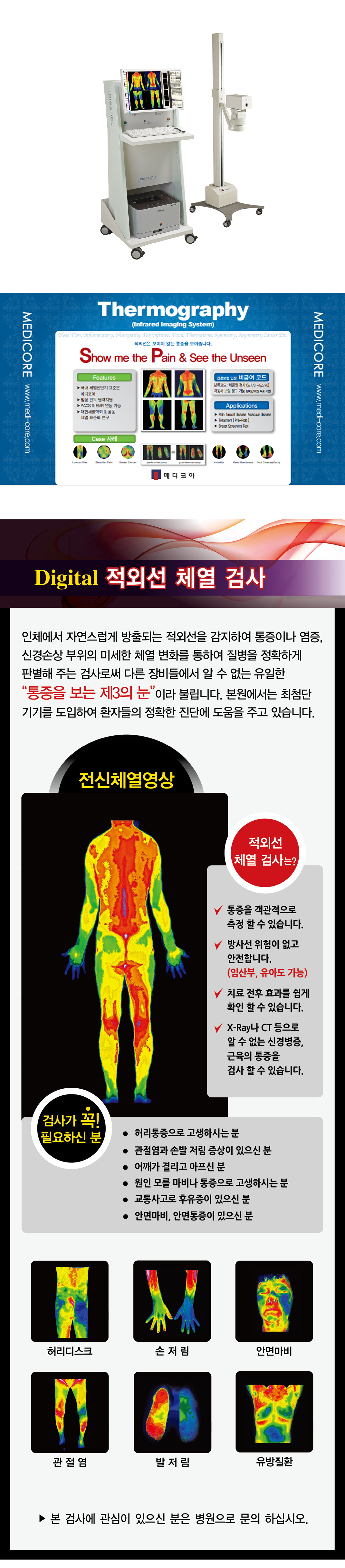 사람의 체표로부터 나오는 적외선을 감지하여 컬러 이미지로 보여주는 의료용 적외선 촬영 장비