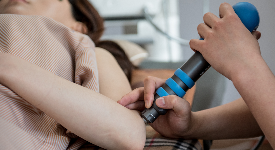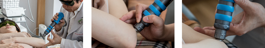 수백 회의 충격파를 가하여 염증을 치료하고, 빠르게 치유되도록 돕는 치료법.